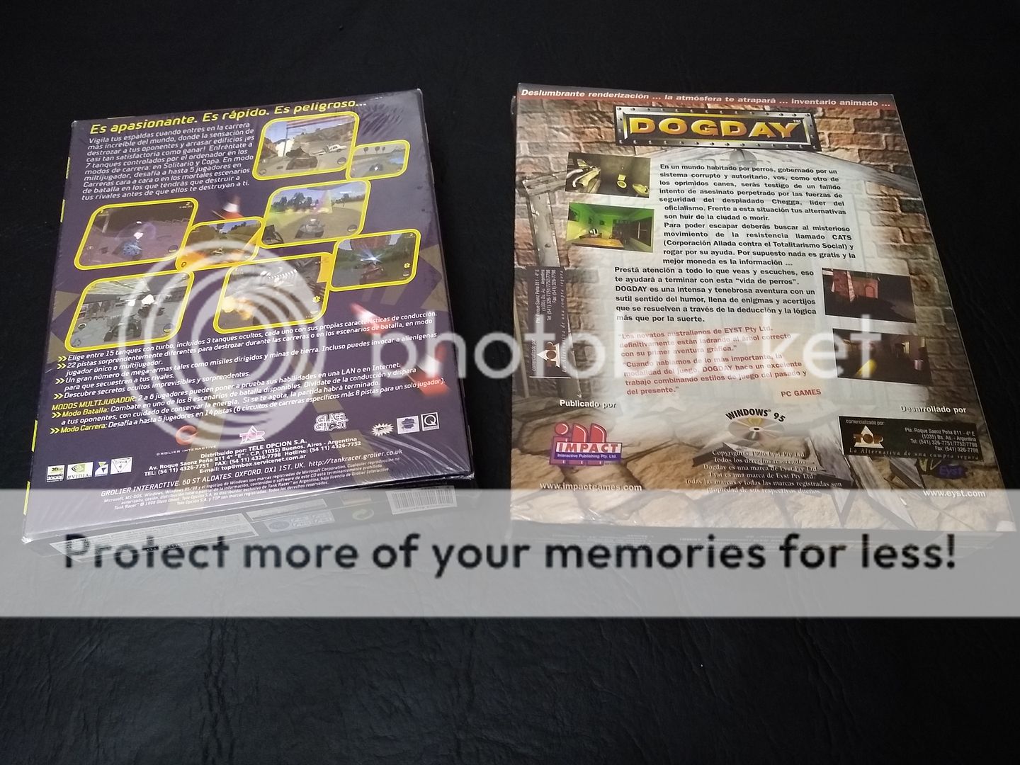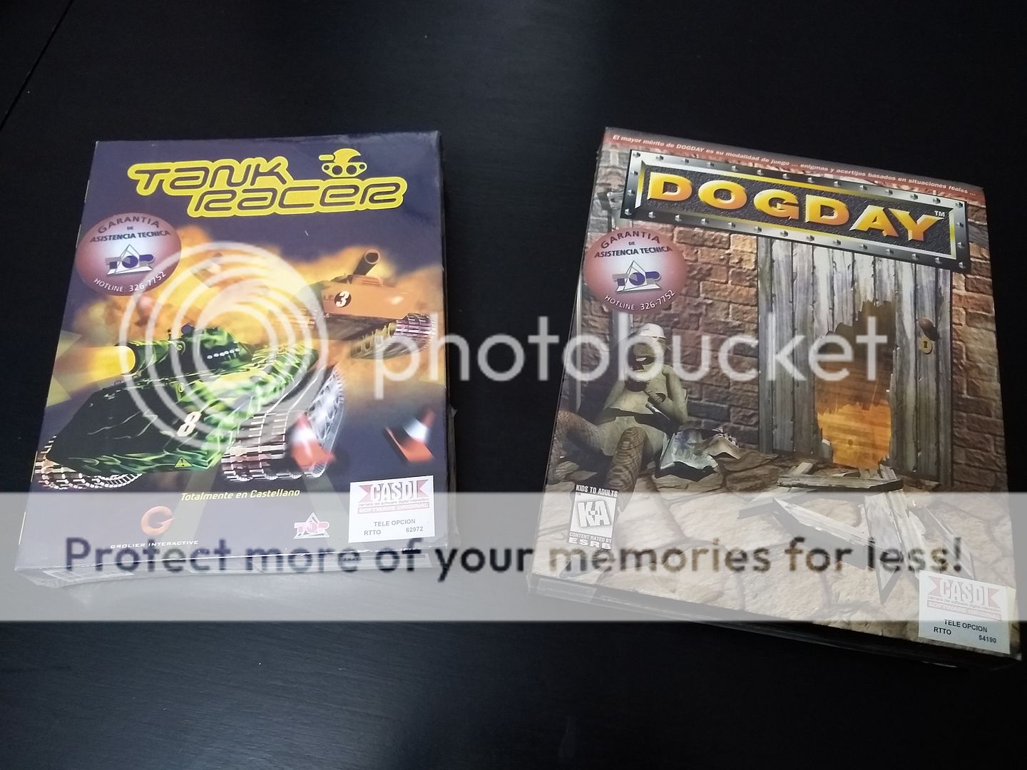 Dogday, aventura gráfica de 1997 en primera persona de los australianos Asylum Productions y Tank Racer, están sellados por un ratito porque recién me llegan, tal vez el Tank Racer lo deje así ya que lo compre en combo con los demás, pero tal vez lo use también para cambio.