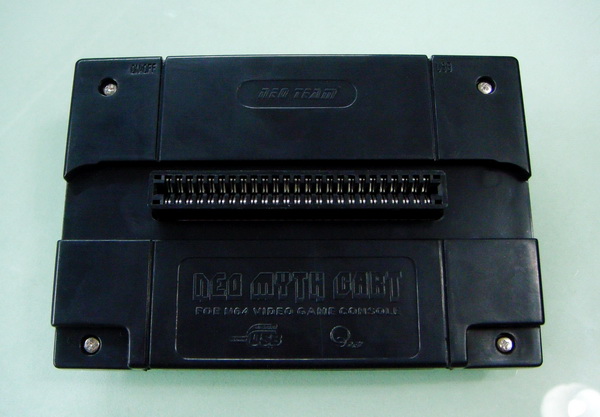 Parte frontal del Neo N64 Myth Cart,que utiliza un catucho flash Neo2 series para almacenar los roms y los saves.